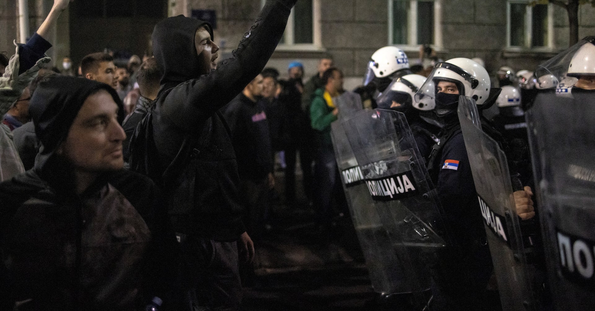 Hundreds of anti-government protesters clashed with supporters of Serb President Aleksandar Vucic late on Sunday, close to the anniversary of a deadly roof collapse that triggered a youth-led movement against alleged corruption and mismanagement.