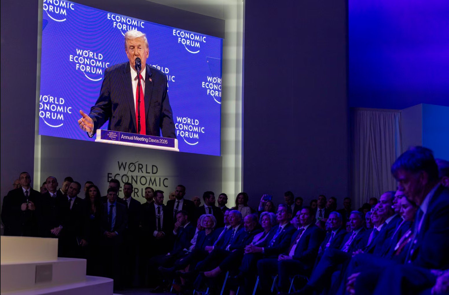 In true Trumpian fashion, President Trump opened his speech at the Davos World Economic Forum by saying it was a pleasure “to address so many respected business leaders, so many friends, a few enemies.” He told those assembled that he had just marked the one-year anniversary of his second term in office and said the U.S.