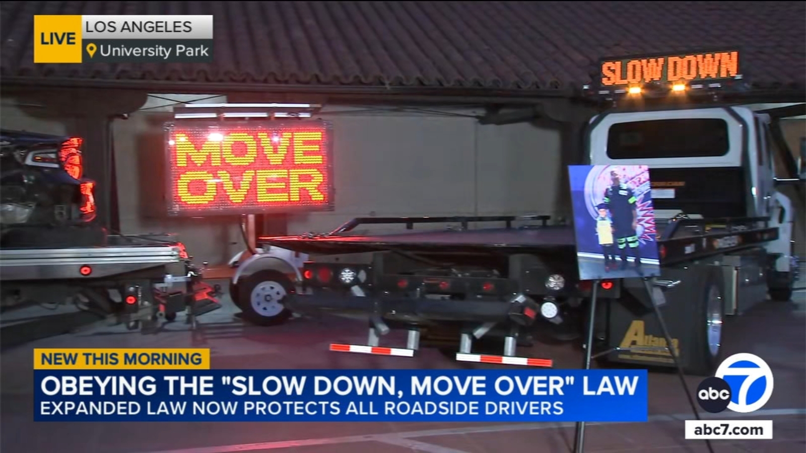 LOS ANGELES (KABC) — Public safety officials are attempting to raise awareness of newly implemented protections in California’s “Slow Down, Move Over Law,” which has been expanded to apply to all drivers and passengers stranded on roadsides.