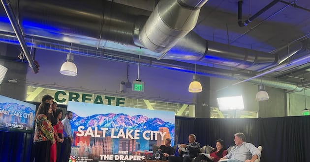 A group of entrepreneurs took turns giving pitches in front of venture capitalists and an audience during a live recording of “Meet the Drapers” on the University of Utah campus Friday.