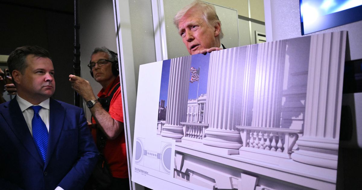 The president interrupted an Iran war update for ‘important’ White House ballroom news. On Air Force One, Trump told reporters he’s ‘so busy’ fighting wars. But that didn’t stop him from breaking out the props to defend his ballroom construction.
