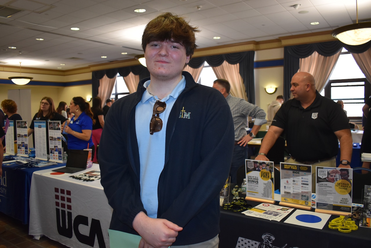 Nearly 400 students from Westfield High School, Pathways, Westfield Technical Academy, White Oak School and St. Mary’s High School attended a career fair in Scanlon Hall at Westfield State University on April 1, sponsored by the Westfield Education to Business Alliance (WE2BA).