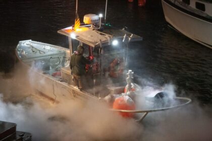A blaze on Portland’s waterfront Friday destroyed one business and damaged another as well as boats docked in the Old Port. PORTLAND — A blaze on Portland’s waterfront Friday night destroyed one busin...