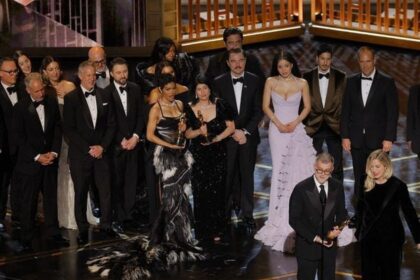 By Lisa RichwineLOS ANGELES, March 15 (Reuters) – The darkly comic thriller “One Battle After Another” claimed the coveted best picture prize at the Oscars on Sunday, winning a close...